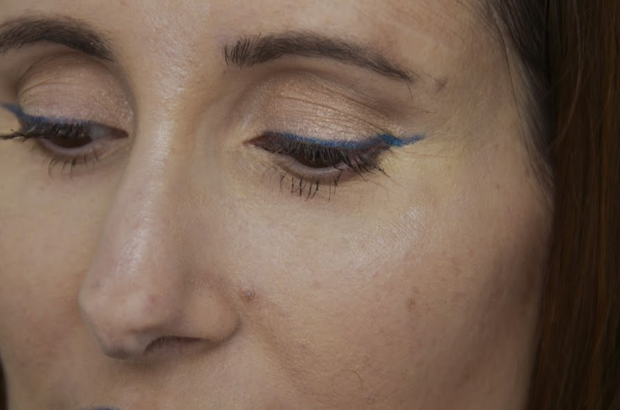 El maquillaje es muy sencillo, para los ojos opté por un maquilleje en tonos neutros y un delineado en azul.