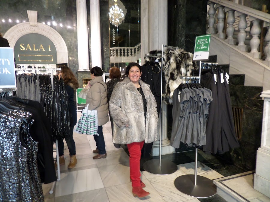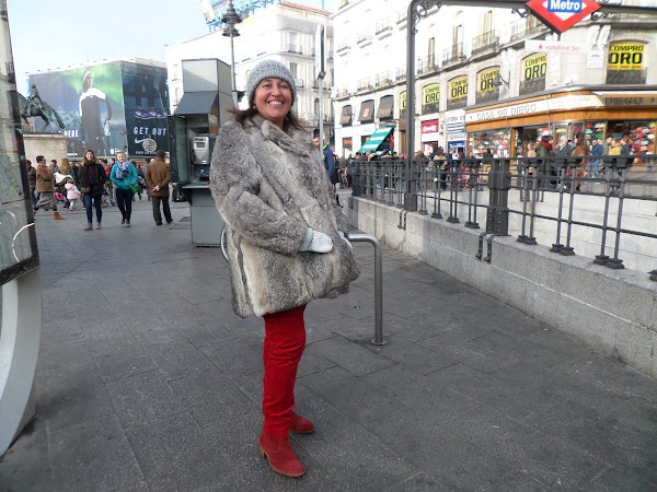 .... abrigo de pelo vintage en color gris con gorro de lana y botines a juego con el pantalón.