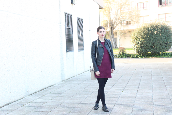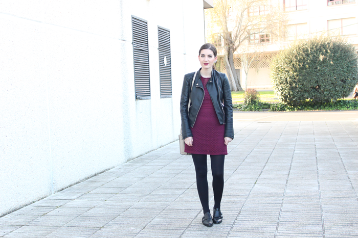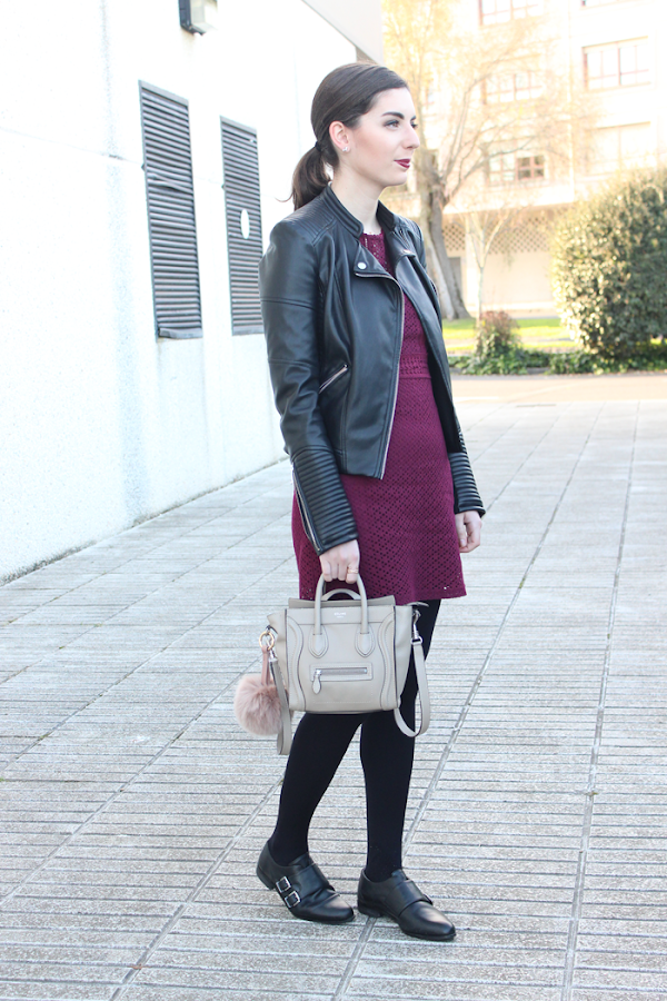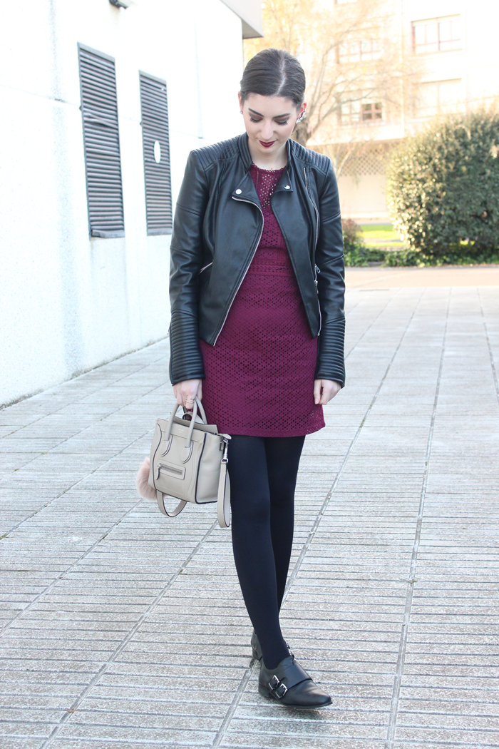 Buen día!! Ya está por aquí, por fin, el look de mi cumple. Y como no confíé en mi chaqueta biker para este look de día especial. El vestido es de estreno, bastante diferente a lo que suelo llevar pero me gusta, ayuda un montón que sea granate porque como algunas sabréis es otra de mis debilidades en tema moda.