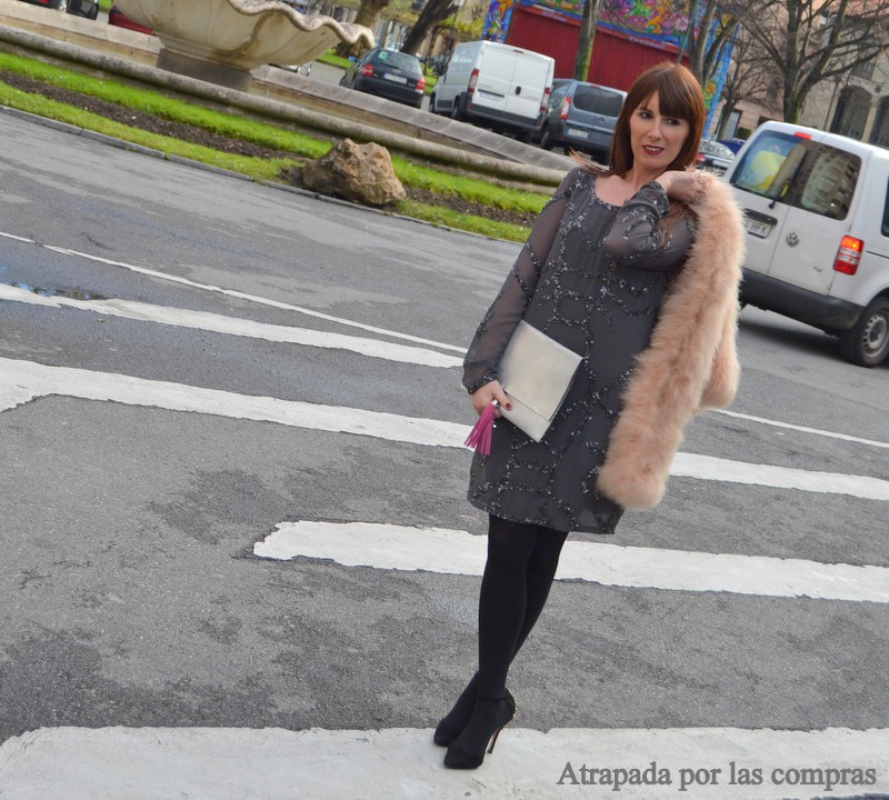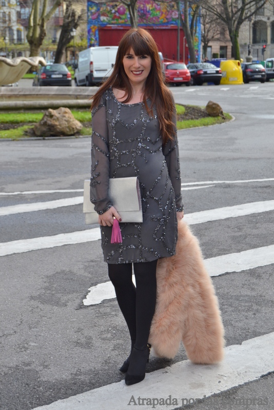En este caso escogí un vestido con pedrería de VILA y un chaquetón de pelo en rosa empolvado. Esta temporada, al igual que ocurriera el invierno pasado, los abrigos de pelo son tendencia y es una opción ideal para no pasar frío y para acompañar nuestros looks, desde los más casual hasta los de fiesta. Los podemos encontrar en multitud de colores y estampados pero sin duda el must de la temporada es el chaquetón de pelo rosa, uno de los colores de este otoño/invierno, y que pudimos ver en los desfiles de Carven, Emilio Pucci, Moschino o Roberto Torreta, entre otros. De complementos únicamente una cartera de mano en plateado de la firma asturiana CUATROMANOS. Qué os parece el look?