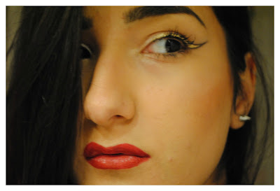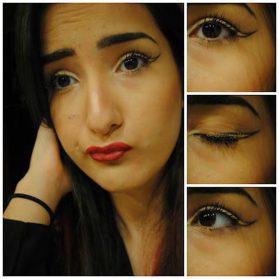 El eyeliner con el labial rojo son un look seguro que siempre encanta... pero no quería que fuese lo de siempre así que le di un toque doradito, ¿Qué os parece?