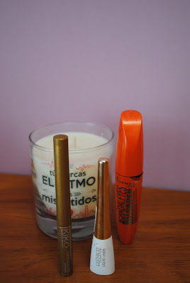 Para los ojos he utilizado el eyeliner dorado de Catrice y el eyeliner dorado de Kiko mezclándolos para tener más intensidad. Para los bordes del eyeliner he usado mi fiel eyeliner de NYX negro mate. La máscara de pestañas es la nueva Scandal Eyes de Rimmel London que me va gustando bastante.