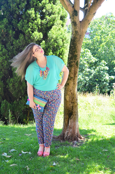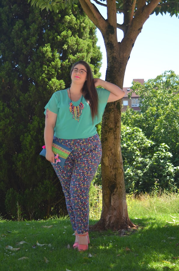 Decidí combinarla con un pantalón floreado, y por supuesto mis nuevas sandalias rosas que tienen bordadas flores en los tacones. Siento que es un outfit muy fresquito para esos días asturianos en los que no hace demasiado calor exactamente, pero tampoco frío. Y además, siendo tan colorido, levanta el animo y da unas buenas energías geniales!