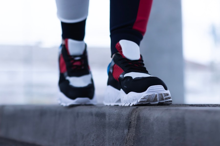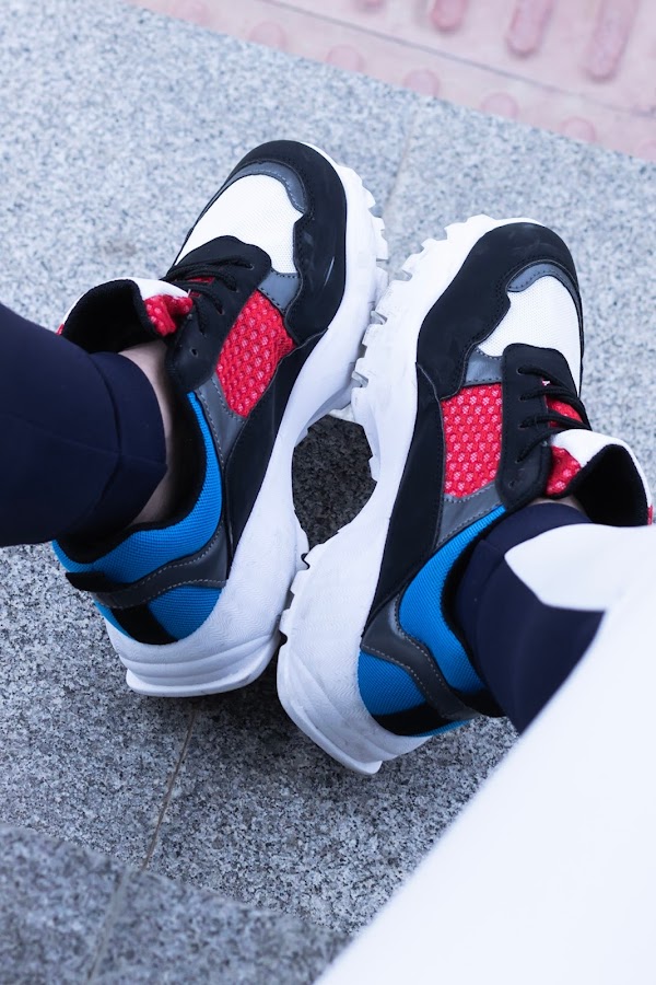 Para mis pies he elegido unas sneakers que me molan mucho, combinando el color azul, el rojo, el blanco y el negro.
