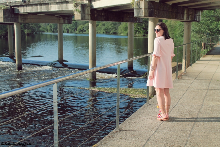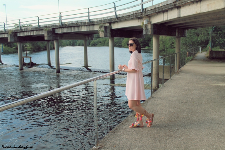 Llevo vestido de la nueva colección de mi tienda, un cacao dress en rosa bebe con vuelo y caido y como detalle los volantes en las mangitas que lo hacen diferente y especial. Lo podeis encontrar en mi tienda @besosdechocolateyfresashop.
