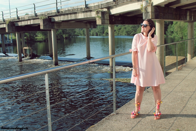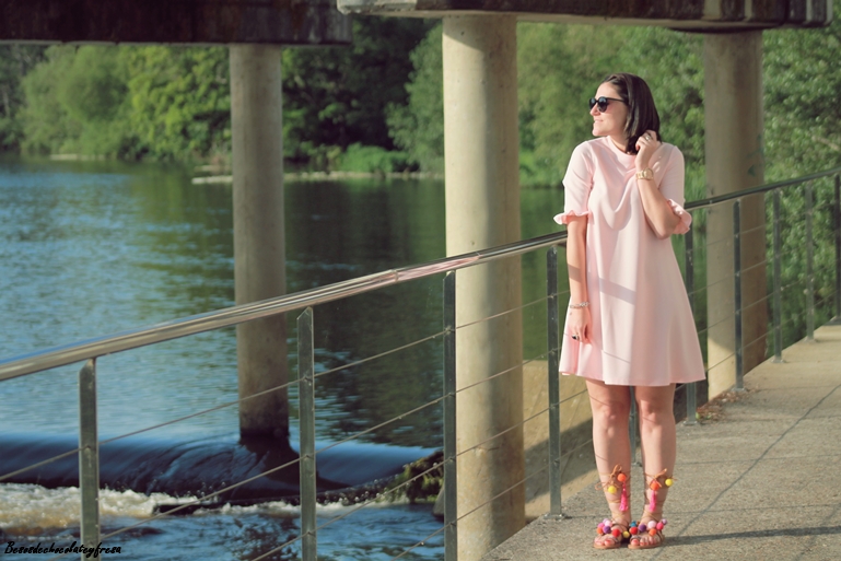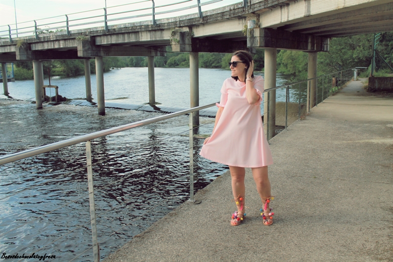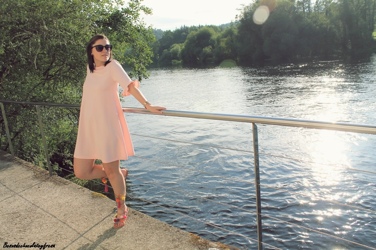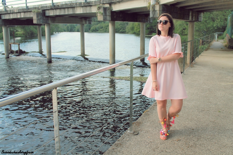 El rosa bebe o rosa empolvado vuelve una temporada más con fuerza para que nuestros estilismos sean frescos y dulces, como el que os traigo hoy, un look sencillo con pocos accesorios pues el boom de color en los pies con mis nuevas sandalias de pompones le da un plus y un extra.