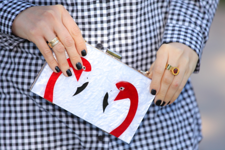Parece que últimamente me estoy animando un poquito más con el gris. Si hace unos día os mostraba este total look, hoy vengo con un outfit compuesto por camisa de cuadro vichy y pitillos al que le he añadido un toque de color rojo en los complementos. Además, llevo mi querido bolso de flamencos que me gusta para ponérmelo tanto con looks de fiesta como con otros más relajados como es el caso de hoy.