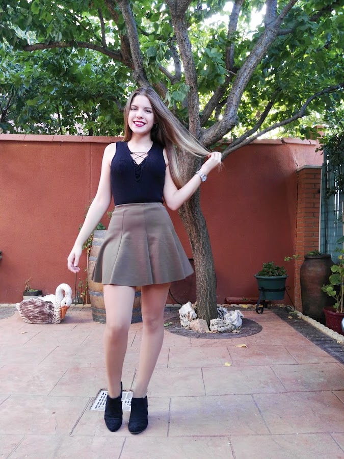 El look me lo puse para un concierto que organizó una universidad que esta cerca de donde vivo y como fue por la tarde-noche y ya está empezando a refrescar pues me puse unas medias con la falda y ¡listo!