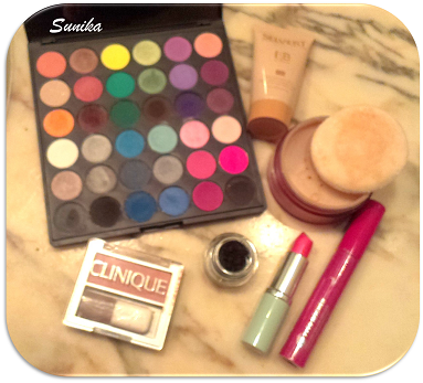 Para el rostro utilicé la BB cream de Servlet que me está gustando mucho y es la que estoy utilizando últimamente. La sellé para evitar algún brillito con los polvos sueltos de MAC. Para los ojos como os comentaba usé la paleta de Coastal Scents delineando los ojos con el fluidline de MAC y como máscara de pestañas una de Yves Rocher. Esta máscara de pestañas no me gusta nada, aquí solo dí una sola capa y casi es como si no me hubiera dado nada, volveré a mi favorita de Max Factor. Como colorete usé un tono melocotón de Clinique que me gusta mucho porque da ese imagen de buen aspecto y el labial también un rosado de Clinique.