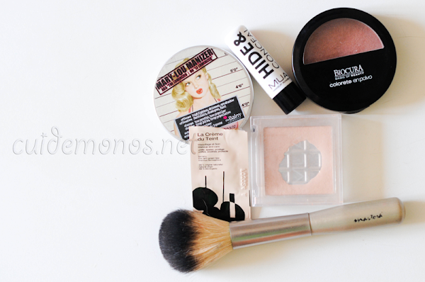 En esta ocasión no he usado contorno para el rostro y solo me he aplicado el colorete de Biocura en el tono 76 Sunset (también regalo de Almu, ¡como me cuida esta mujé!) y que es perfecto para ésta época del año. Además es un supuesto clon del Rockateur de Benefit, y he de decir que es preciosísimo.
