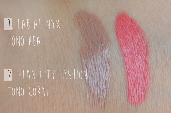 Esta ha sido la parte más sencilla ya que me ha bastando con mezclar el tono Rea de Nyx con la barra City Fashion de Hean en el tono Coral para que el resultado fuese suave y natural pero sin acabar con labios de "difunta". Como veis el acabado es mate y de un color similar al del labio.
