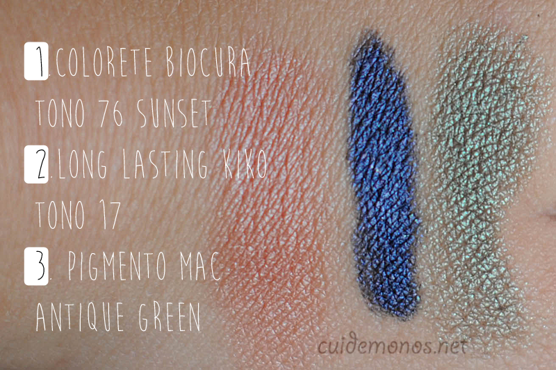 Después he difuminado muy bien el corte de la sombra verde con la que usé para unificar el párpado.