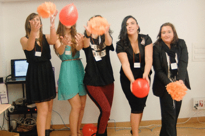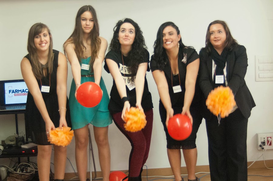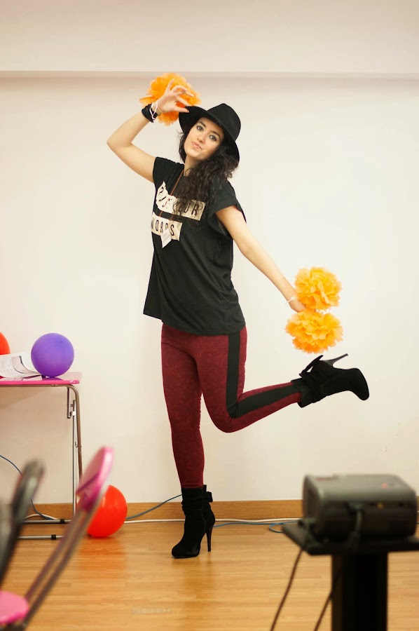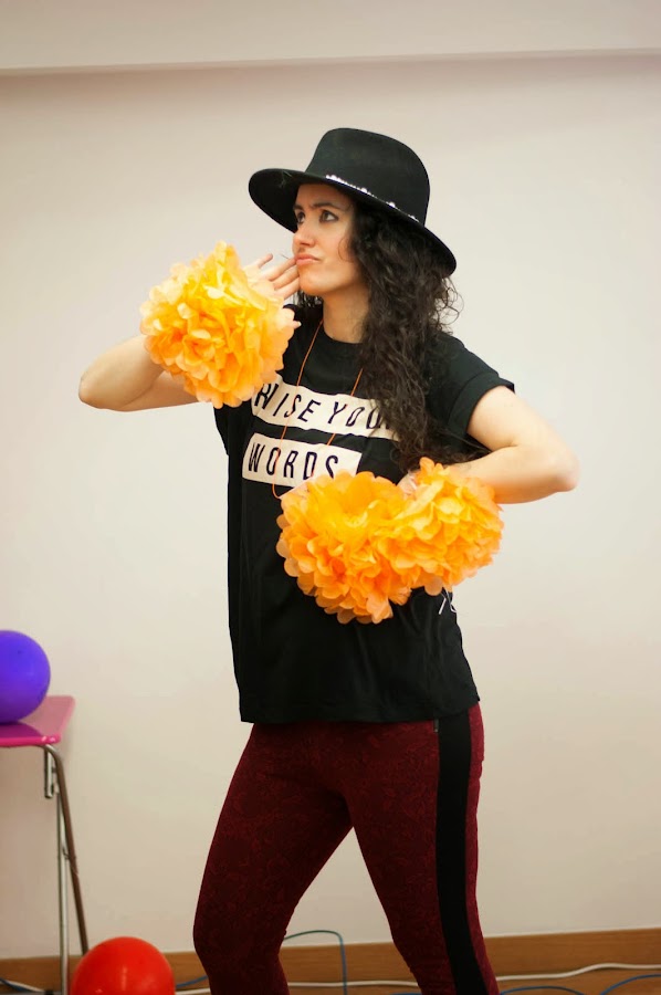 Y quién no ha querido ser alguna vez en su vida una auténtica cheerleader?? yooooooo sin ir más lejos, que a mí lo americano me tira mucho, pero nada calabacitas, ni cuerpo atlético, ni elasticidad, ni flexibilidad, ni piruetas , un desastre vamos! pero fue ver los pompones que como os había contado formaban parte de la decoración del evento y no me pude resistirrrr, dame una A, dame una B, dame algo qué se yo!!!