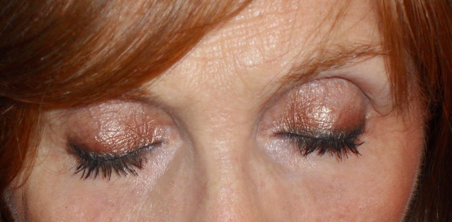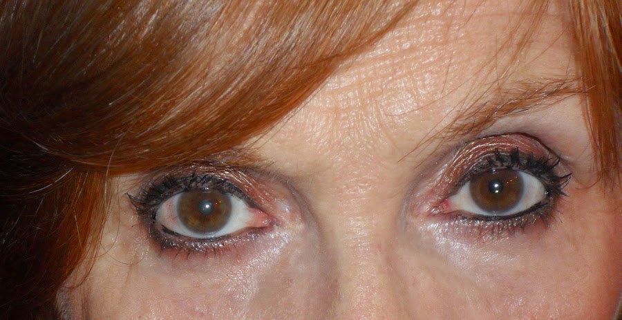 En los ojos he usado el primer de Kiko, en marcado la cuenca con la sombra 122 de Kiko, he puesto la sombra "Galáctica" por todo el párpado móvil, yo la he aplicado con el dedo, he llegado a la conclusión que las sombras que llevan brillitos se me adhieren mucho mejor con el dedo en la piel y no se caen por la cara, también he usado un cuarteto de Bell de sombras mates, en concreto el número 1, y con la sombra primera de abajo he difuminado y con la segunda de arriba he iluminado, he delineado con el lápiz marrón de HM y lo he difuminado utilizando la sombra oscura de la paleta de Bell, luego he delineado con el gel liner negro de Kryolan por el párpado superior y con lo que me quedaba en la brochita también he puesto por abajo y lo he difuminado y encima he puesto un poco de la sombra "Galáctica", en la waterline he puesto el lápiz "Master Drama" de Maybelline y la máscara de pestañas que he usado es la "The Colosal Go" de Maybelline.