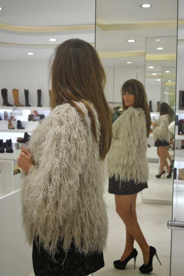 Como prenda de exterior, se me ha ocurrido que, una buena opción sería este interesante chaquetón de pelo (super suave) en color gris piedra, que además estaba muy rebajado.
