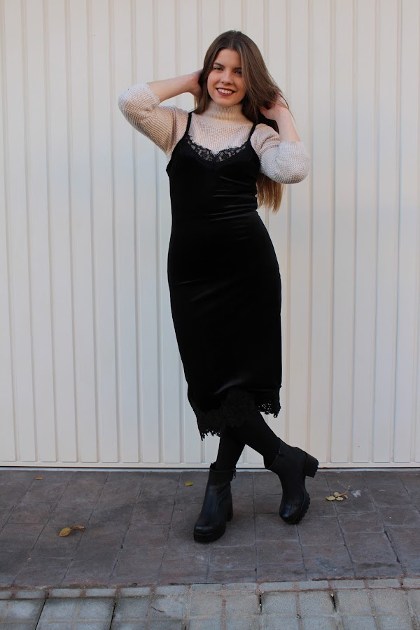 Hoy os traigo un look un poco diferente, tras la moda de los vestidos con una camiseta debajo he decidido llevarlo un poco más allá y en vez de introducir una camiseta en el look he introducido un jersey para así poder llevar los vestidos lenceros también en invierno, aquí os dejo las fotos y los detalles del look, ¿qué os parece?