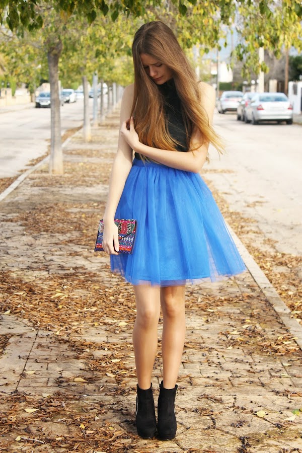 Hoy os enseño el segundo look de Navidad. En este caso os propongo un look que no creo que a todo el mundo le guste. En primer lugar llevo una camisa de Zara atacada al cuello combinada con mi falda de tul. Sé que es de la temporada pasada, pero a mi me sigue gustando igual. Como complemento llevo un bolso de mano de Argentina que me trajo mi tía (estoy enamorada de él). El lunes os enseñaré otro look para esta época del año.