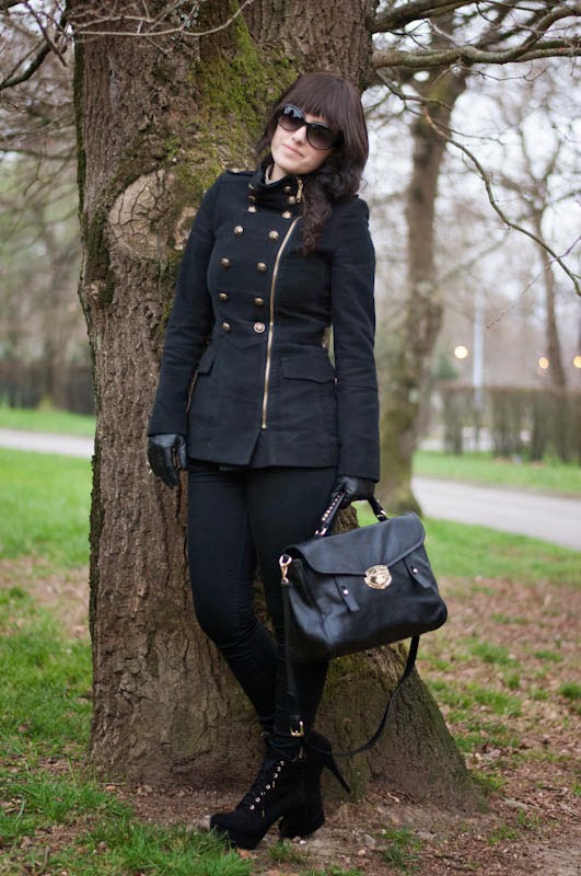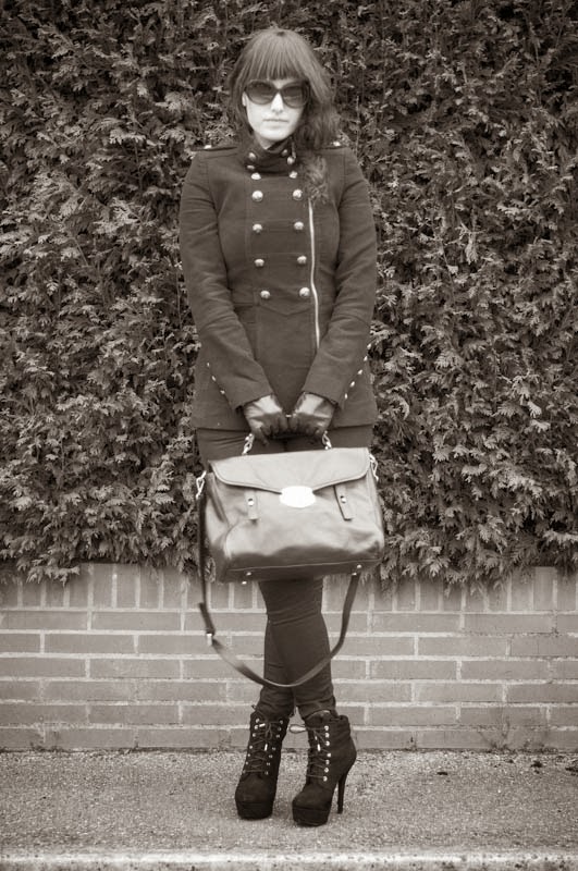 Hola calabacitas!!! ya no falta nada para la primavera y se nota porque estamos teniendo días con mejores temperaturas, pero este sábado pasado, aquí en el norte tiraba un aire de lo más frío, así que no me lo pensé dos veces y me agencié mi chaqueta de estilo militar color azul marino y con doble botonadura dorada. Son los últimos coletazos que está dando la chaqueta porque soy consciente muy a mi pesar, que ya le toca invernar en mi armario hasta septiembre, jeje. El resto del look es sencillo para no quitarle protagonismo a la chaqueta, lo único los botines con plataforma incorporada que estilizan un montón. Ahh que no se me olvidaba calabacitas!!! no he cambiado de peinado ni me he cortado media melena para tener un flequillo tan tupido, es mi adorado flequillo postizo!! más adelante le dedicaré un post sólo para él porque se lo merece y con fotos a color para que veáis lo bien que queda porque apenas se nota. Recuerdo la primera vez que me lo puse, como soy una atrevida fue nada más ni nada menos que para acudir a una comida familiar, y sí calabacitas pasó con nota la prueba del algodón, jaja, pero como soy de lo más sincera, enseguida revelé mi secreto!!!:)