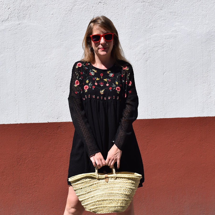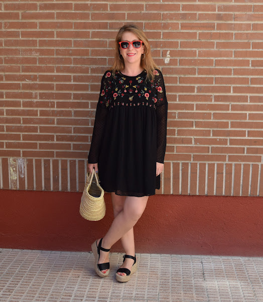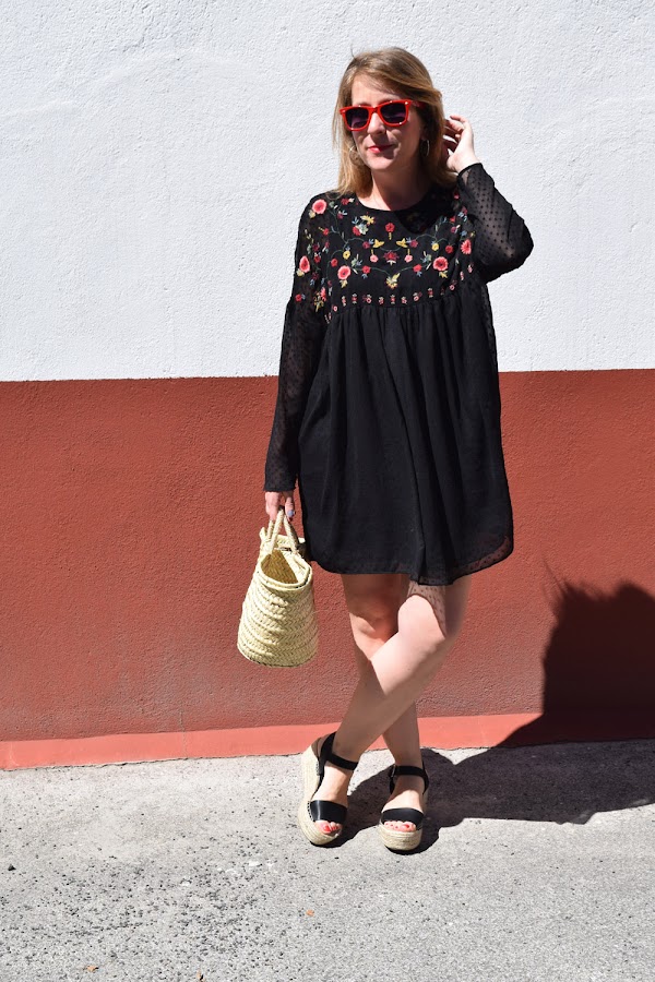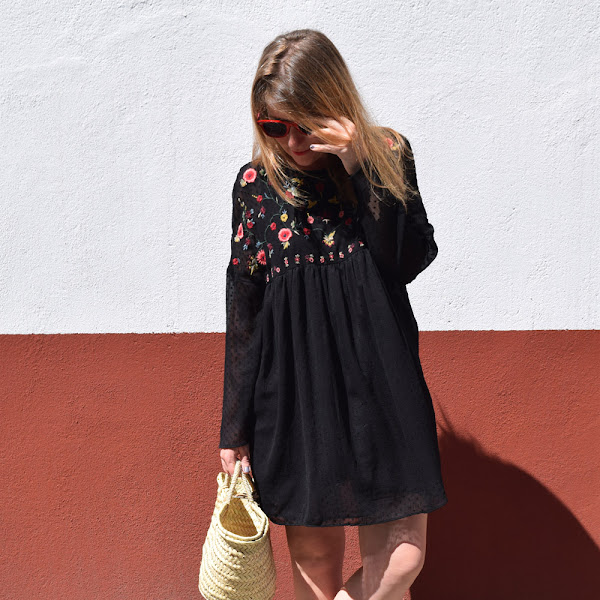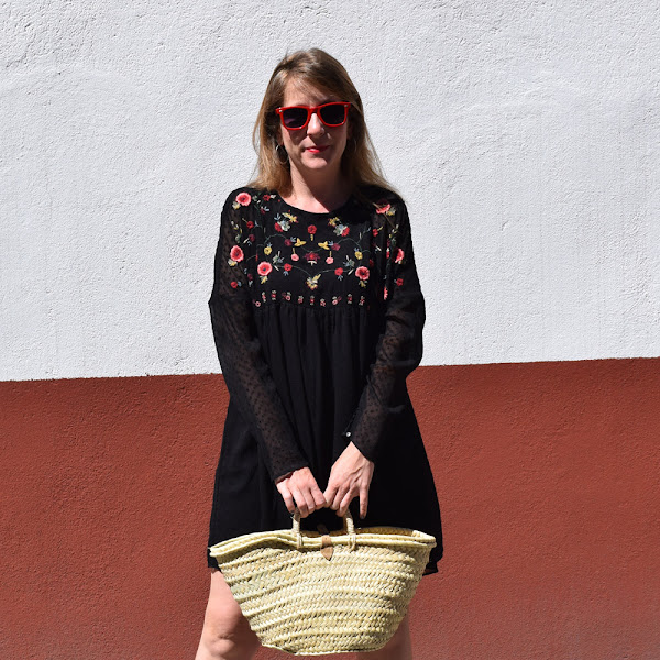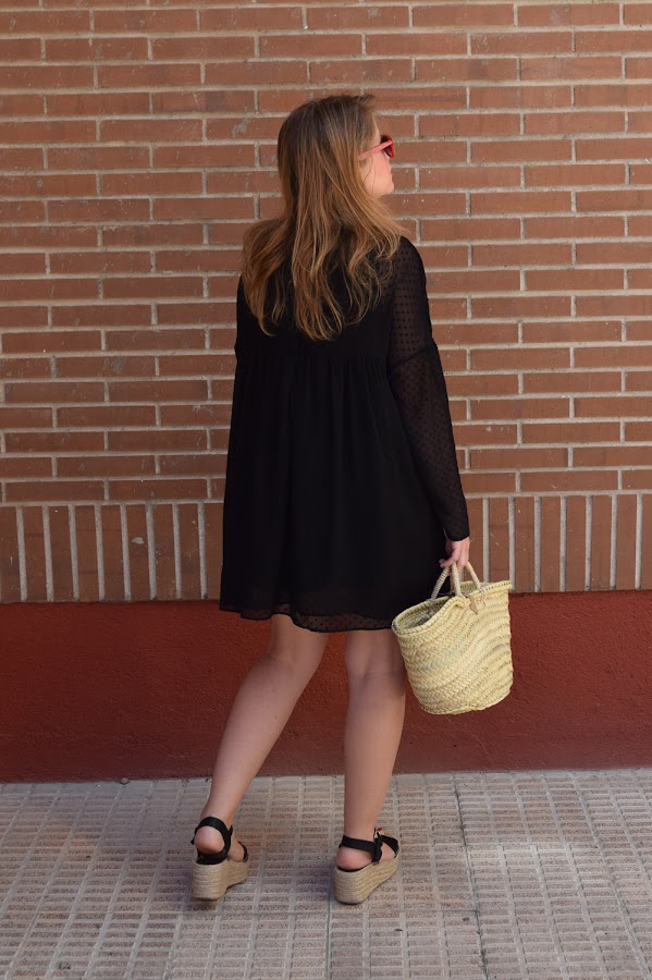 El mono-vestido de hoy, fue una adquisición de las primeras rebajas, y no lo he utilizado hasta ahora porque la verdad, me daba un poco de calor. Parece que no, pero las mangas semitransparentes largas no ayudan con 40º a la sombra.