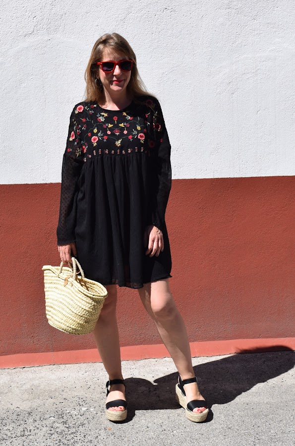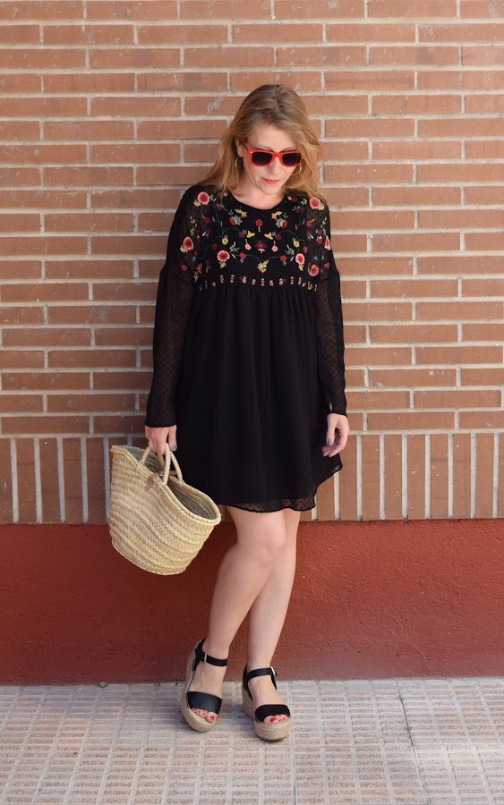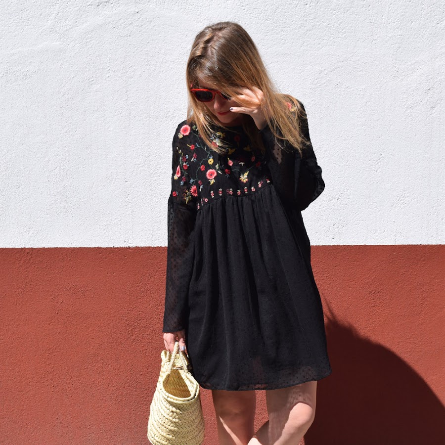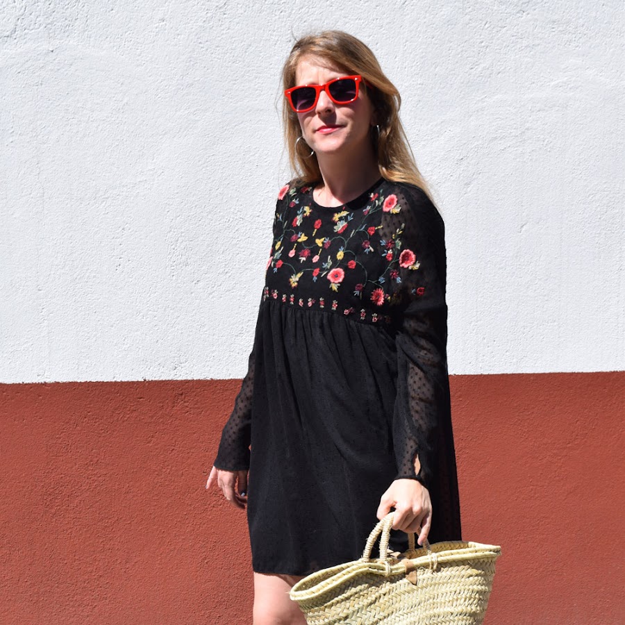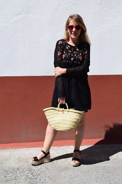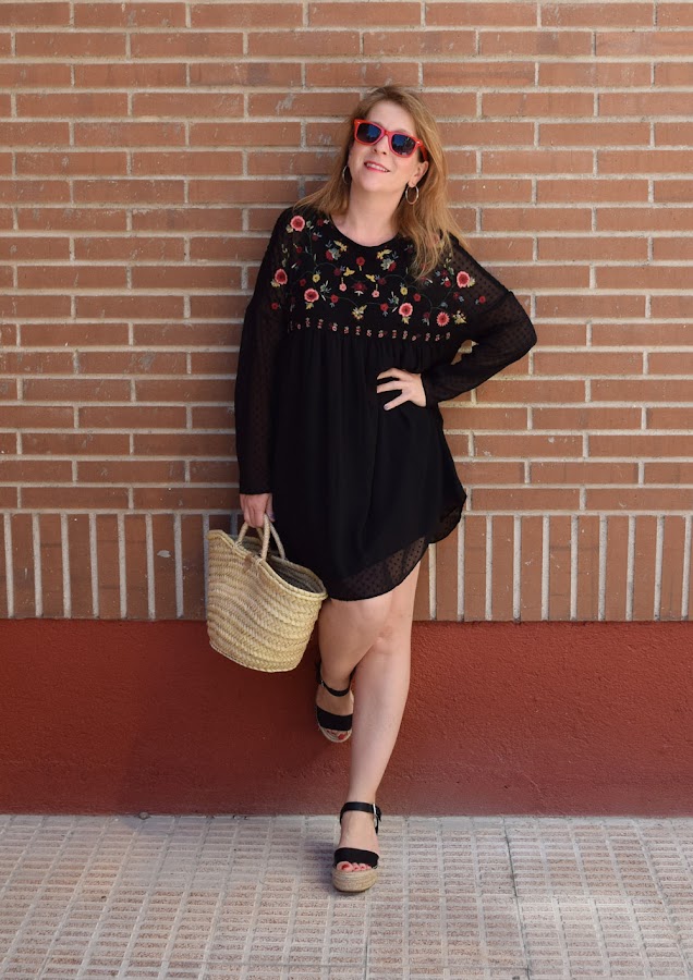 El mono-vestido de hoy, fue una adquisición de las primeras rebajas, y no lo he utilizado hasta ahora porque la verdad, me daba un poco de calor. Parece que no, pero las mangas semitransparentes largas no ayudan con 40º a la sombra.