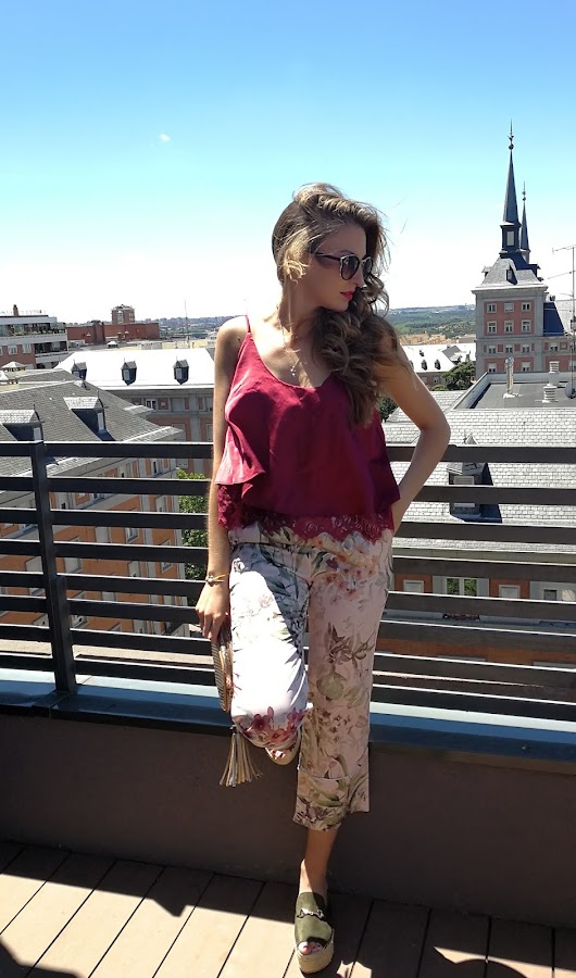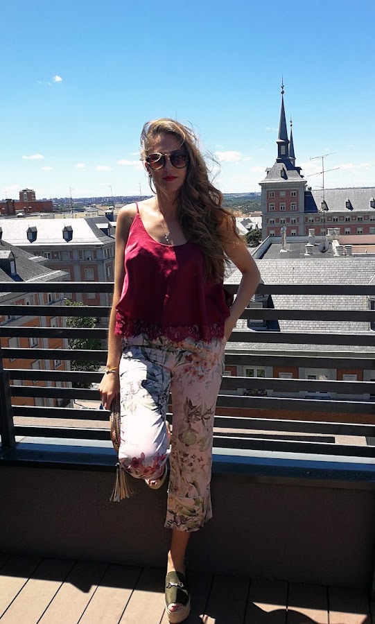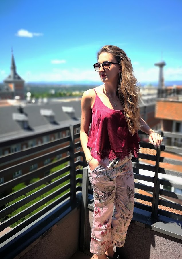 Oriente impone su estética exótica con diseños de llamativos dibujos, flores, bordados, flecos o pedrería de lujo, encargadas de adornar las prendas, generalmente realizada en gasa, seda o terciopelo, por eso cuando vi estos pantalones de seda y flores de aspecto oriental, fue amor a primera vista, son muy alegres e ideales para la primavera-verano y le dan un toque oriental al look.