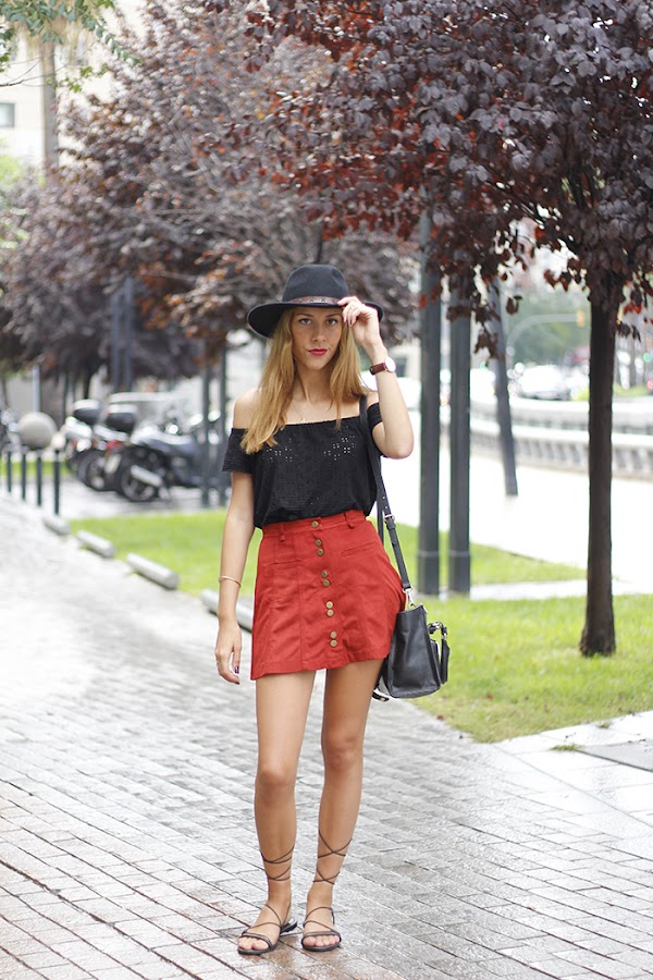 Top, Skirt, Bag: Zara / Hat: H&M / Shoes: Pull&Bear