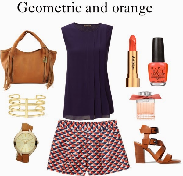Hoy os propongo un nuevo look para el fin de semana. En esta ocasión, he creado el look partiendo de un short con print geométrico y lo he combinado con un top azul marino. Para los complementos he optado por el color marrón y dorado.