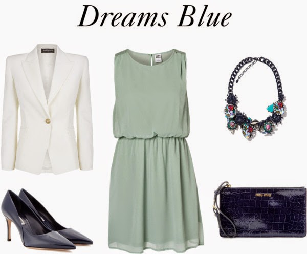 Este finde comienza la Semana Santa y es hora de sacar nuestras mejores galas para salir a la calle y disfrutar de las procesiones. Por ello, hoy os propongo un look ideal para el Domingo de Ramos cuya pieza central es un vestido celeste que he combinado con blazer blanca y collar, zapatos y bolso azul marino.