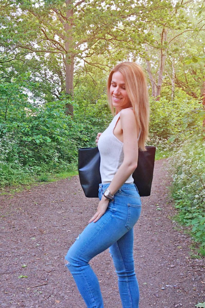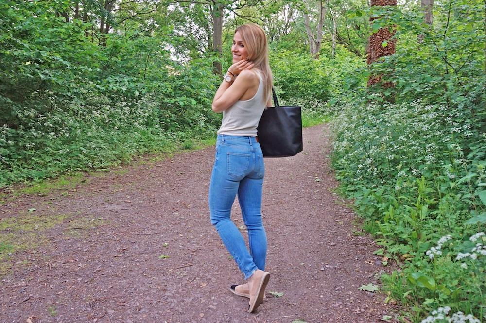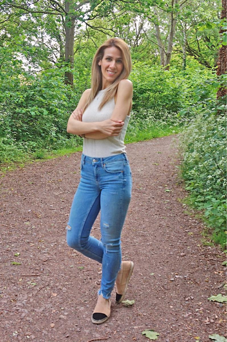 Para completar este look tan cómodo y casual me he puesto estos jeans rotos, también de Zara, y un top de tirantes de Mango con cuello halter. Tanto la ropa como los zapatos son de la temporada de verano, así que deberían estar todavía disponibles.