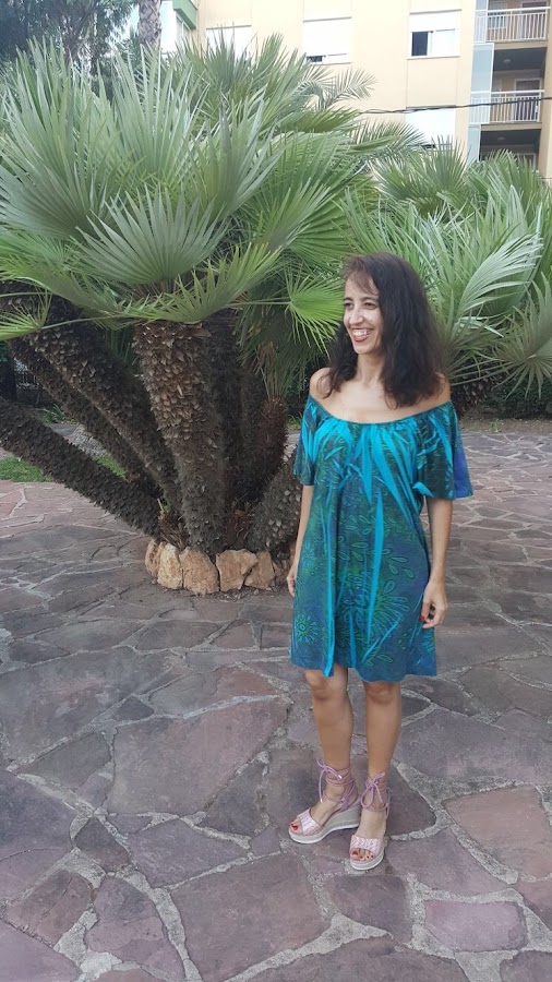 Muchas me preguntasteis por el vestido, tiene bastantes años, lo compré en San Francisco y a pesar de mi cambio de peso, siempre me lo he podido poner porque es sueltecito.