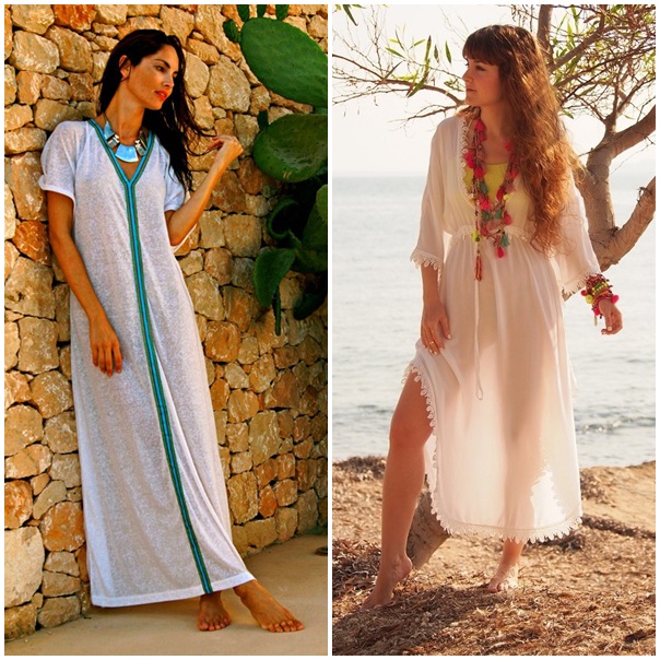 Son prendas cómodas que suelen estar confeccionados en telas vaporosas y transparentes y adornados con bordados y pedrería en escote y sus largos varían, pudiendo encontrarlos cortos, a media pierna incluso largos. Son muchos los diseñadores y firmas que han caído rendidos ante esta prenda pero entre ellos hay que destacar Yves Saint Laurent, Missoni, Mathew Williamson o Etró, quienes han convertido el caftán en una prenda de lujo.