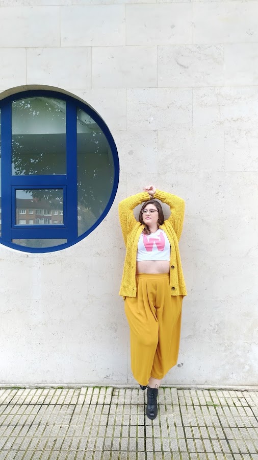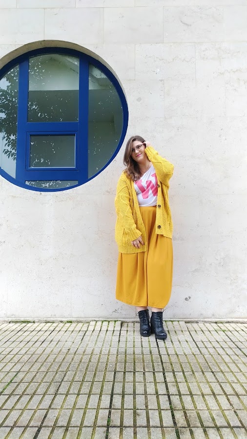 Añadí una chaquetita suelta de punto para darle un poco de textura al look, y esta me pareció super adecuada. Me sentí bien con ella, además me encanta. ¡Ficho por las chaquetas oversize de punto en colores vibrantes!