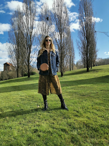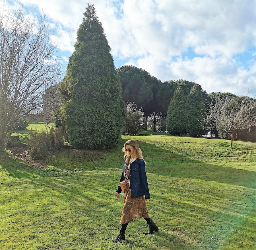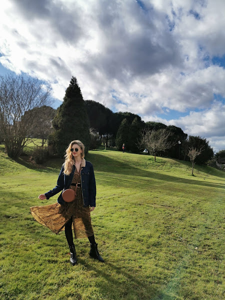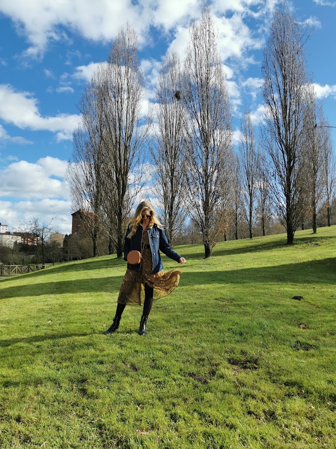 Aprovechando el tiempo primaveral de Oviedo salí a dar un paseo por el Parque de invierno una bombona de oxigeno para la ciudad, es bastante grande con multitud de arboleda variada, para ello me apetecía un look provenzal en concordancia y que mejor que estrenar este conjunto de vestido y cazadora de Salsa.