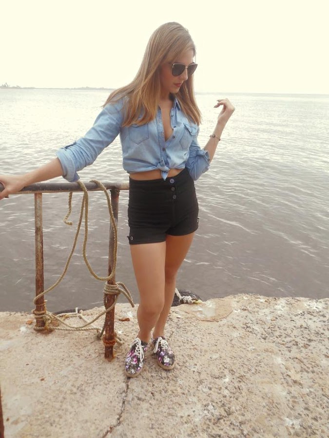 El look que usé fue al estilo retro pin-up porque amo ese estilo, últimamente lo utilizo con frecuencia añadiendo piezas modernas, me fascina como se ve y aunque soy fiel seguidora de las tendencias, siempre me gusta pasearme por lo retro y recrear looks de ensueño.Denim T-Shirt by @Villefranque CCS Online Store