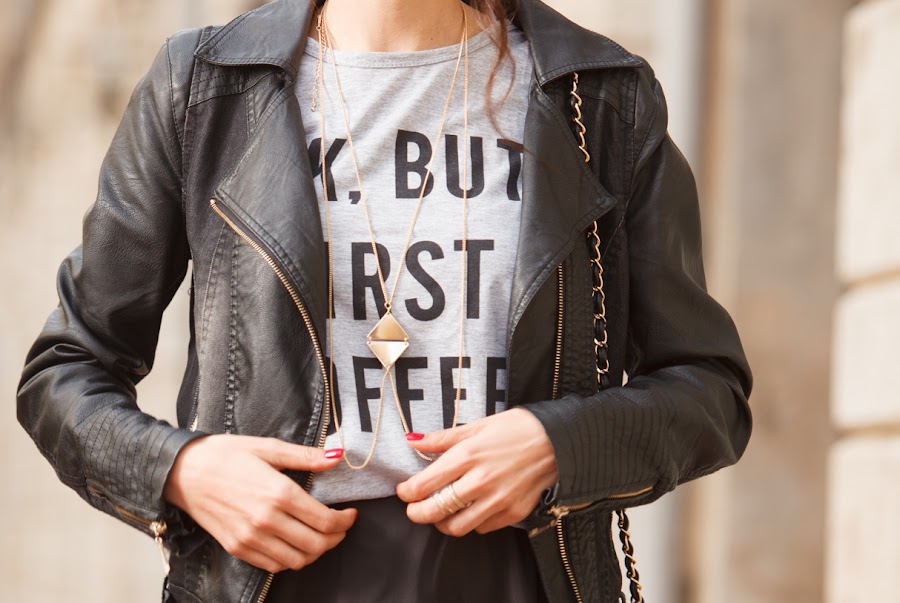 ¡Empezamos nueva semana con un look muy rockero! Estrenando camiseta con mensaje y falda de DRESSLINK!