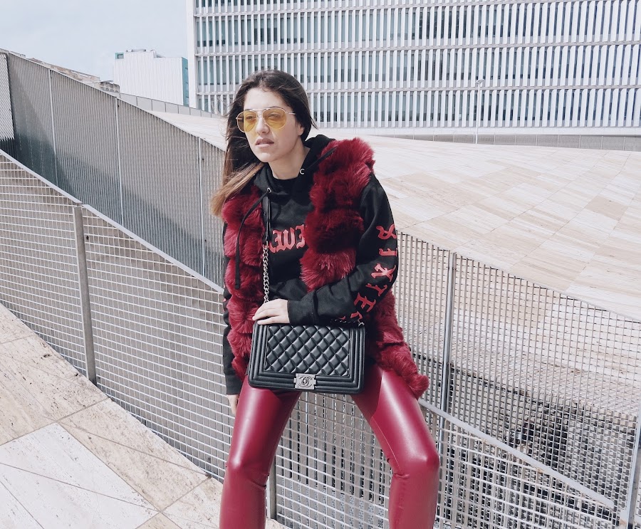 Hoy llevo sudadera rockera de Hawkers con mucho rollo y mi nuevo chaleco de rey piel que me tiene encantada.