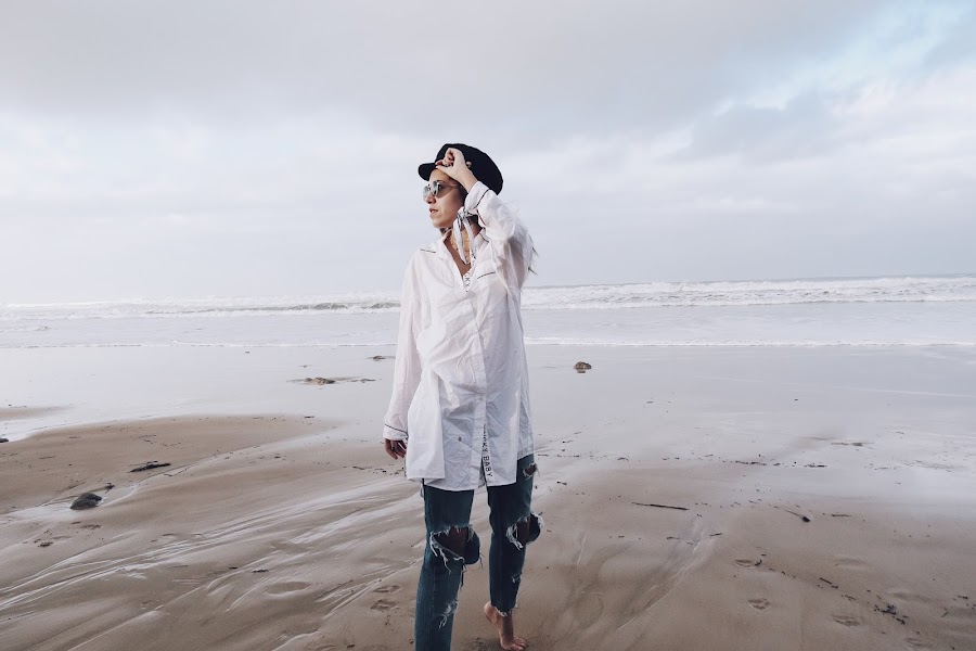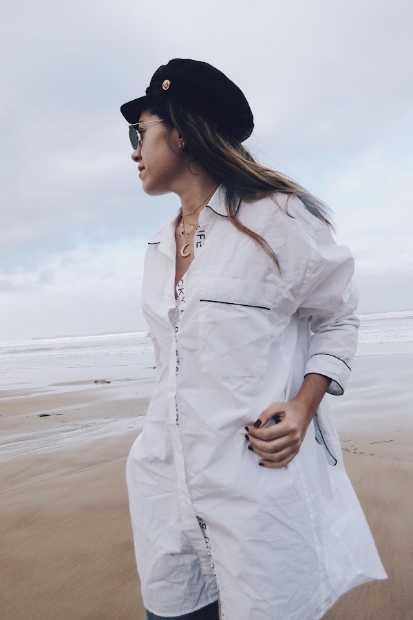 Un look muy sencillo, una localización espectacular y unos collares que son el centro del outfit.