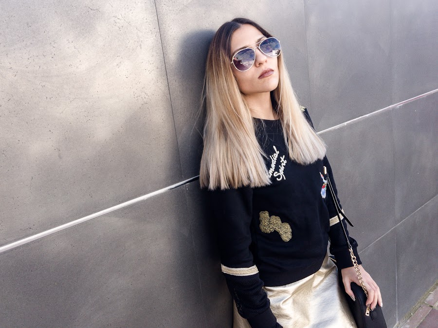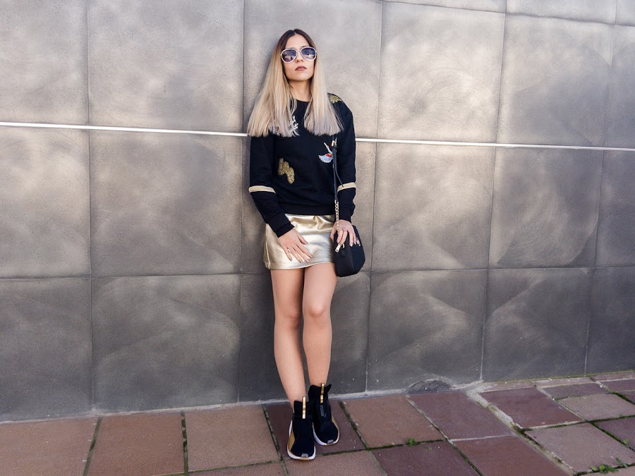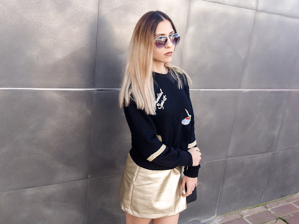 En cuanto al look, seguimos brillando con el color dorado. Y es que esta falda de GAMISS os la enseñé en el post anterior, con un look más fiestero, perfecto para salir cualquier noche. Pero quería enseñaros la misma falda con un look más sport. Porque a veces, creemos que una prenda dorada, solo la podemos llevar de noche y eso es una equivocación!!