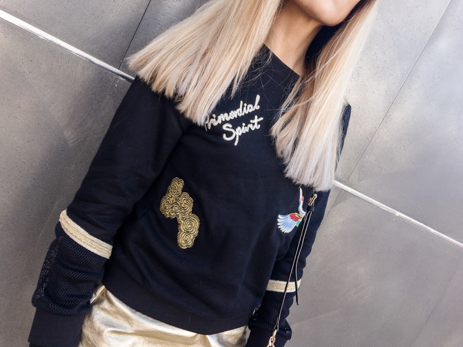 I have combined it with a black sweatshirt with patches and gold details, which is also GAMISS (as I said, this store has impressed me a lot). I love the mesh detail of the sleeves with the golden edge !! Is very warm and perfect also to wear it with any jean!