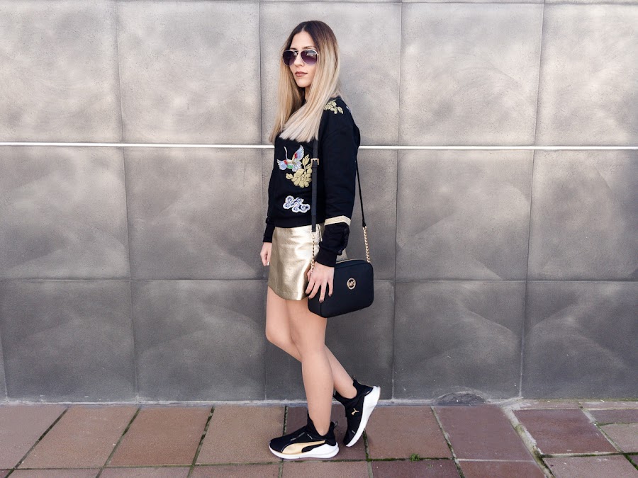 As for the look, we still shine with the golden color. And is that this Skirt of GAMISS I taught it in the previous post, with a party look, perfect to go out any night. But I wanted to show you the same skirt with a sporty look. Because sometimes, we believe that a golden garment, we can only wear it at night and its a mistake !!