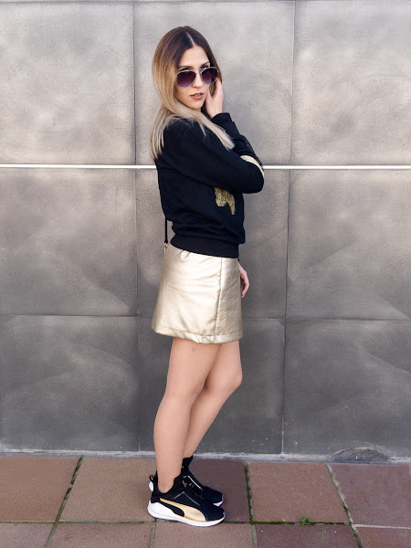 Para mis pies, hoy me apetecía ir cómoda y he elegido mis Puma Fierce Gold en negro y dorado!