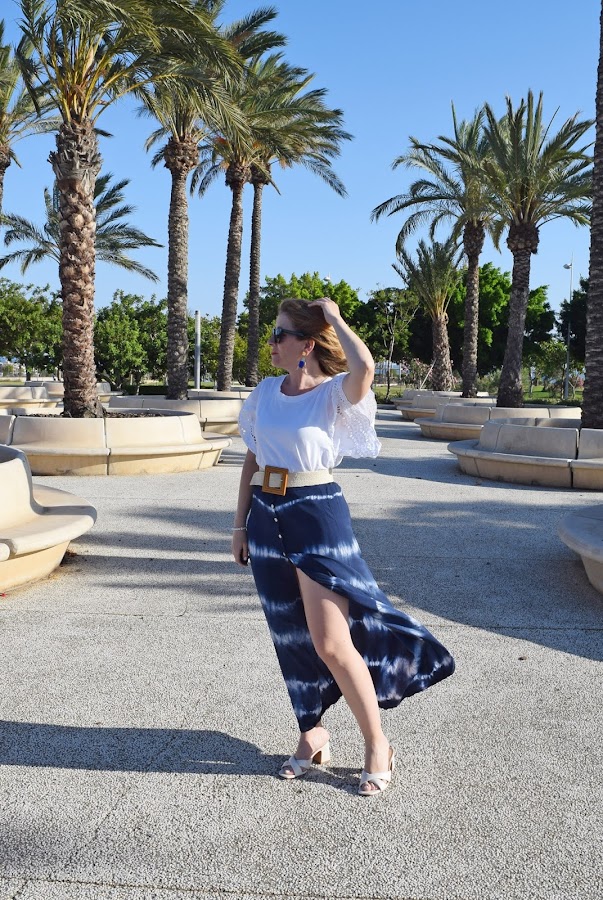 Tanto la falda de estampado tie dye, como la camiseta de mangas de encaje, son tan combinables que las puedes utilizar con muchas prendas diferentes. Un inicio de fondo de armario más especial, alejado de los básicos más clásicos.