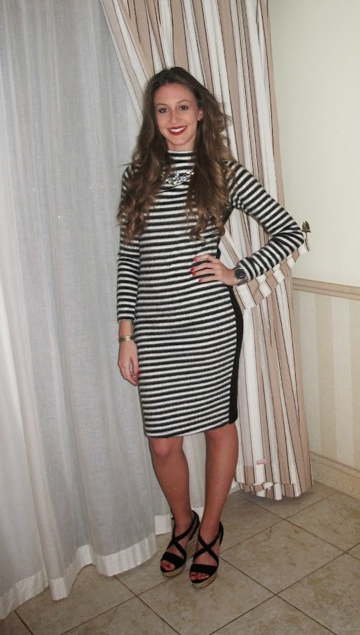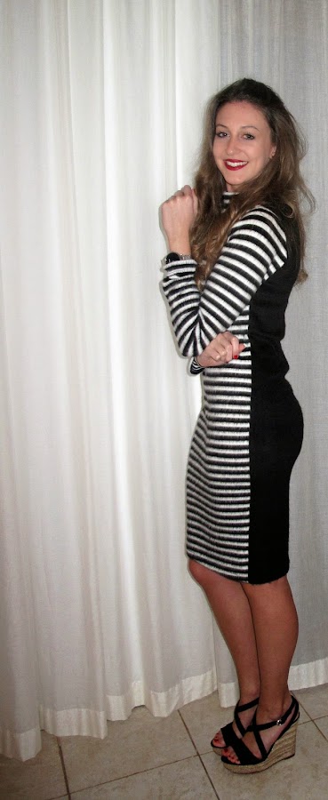 En Lanzarote en un mercadillo tropecé con un vestido midi de lana de rayas que me gustó y cuando lo probé, aparte de calentito, me encantó.