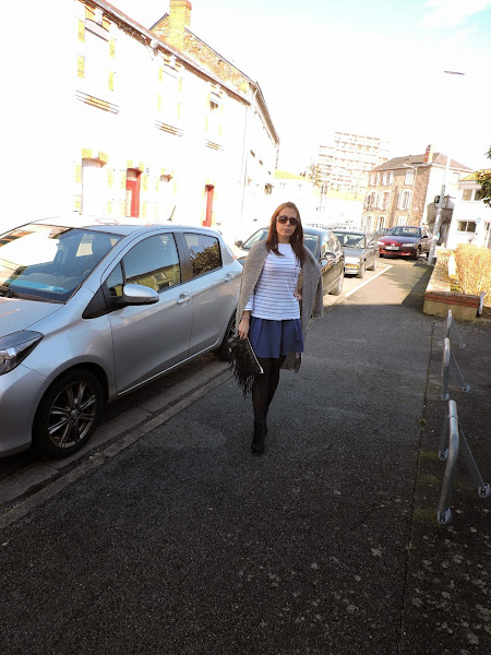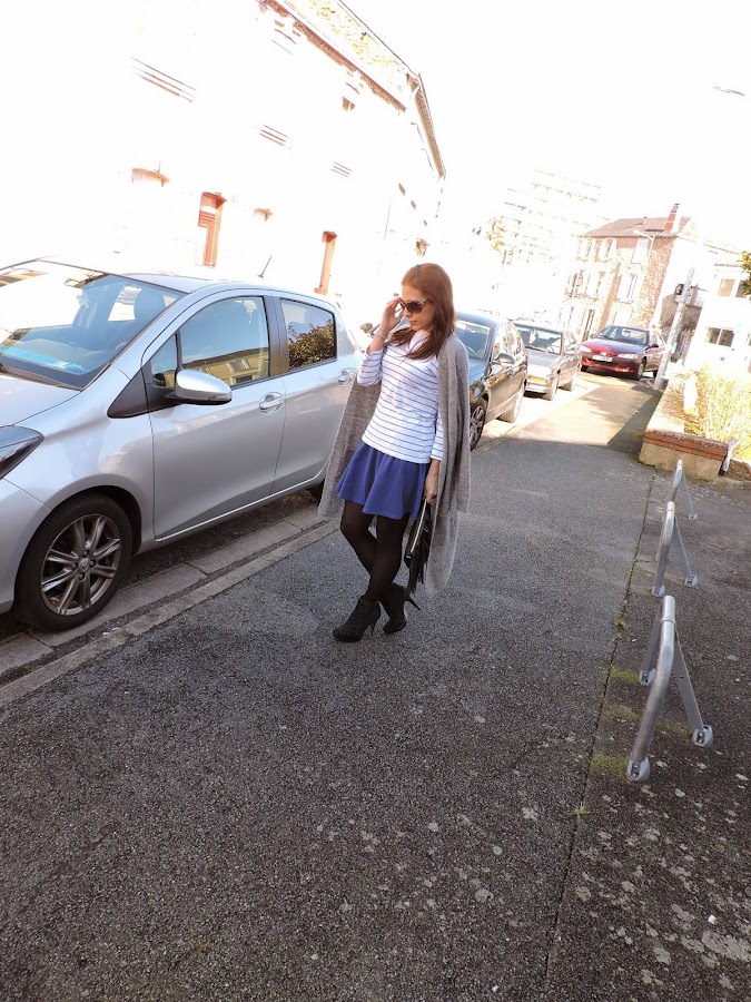 La jupe, le sac et cardigan sont de new yorker, les chaussures de chaussea, le tee-shirt il est d"un magasin local que je viens de découvrir, et qu"il ont de très belle choses.