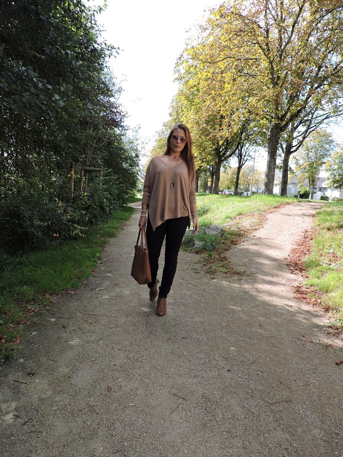 Buenos días!!! Lunes gris y triste en Francia, un sentimiento de rabia, dolor y desprecio me recorre en cuerpo, después de los atentados del viernes. Hoy un look sencillo y de lo mas básico, jersey H&M, pantalón Florence, botas new yorker, como accesorio un collar H&m.
