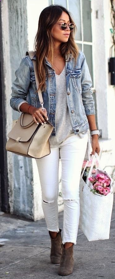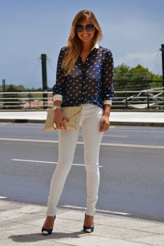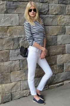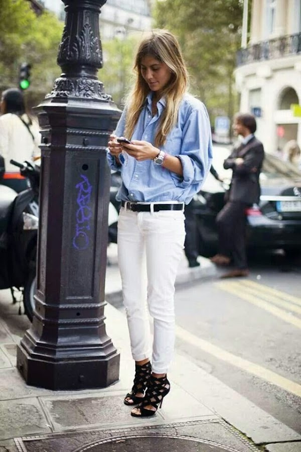 Una de las combinaciones que más nos gustan con los pantalones blancos son las prendas azules, las denim, las navy, etc... Para mi gusta de las más favorecedoras. Os dejamos algunas imágenes de inspiración.