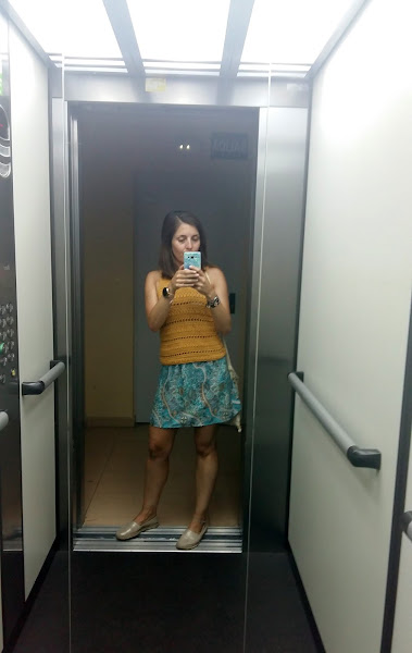 Look handmade total, con la camiseta de ganchillo de Yellow Knit y el vestido reconvertido en falda.