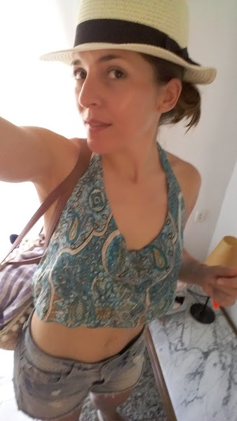 Looks playero total, con vaqueros de hace tres temporadas , arriba top de Women Secret de la temporada pasada (lo he visto muy parecido en las rebajas de Mango) y abajo, top hecho con el vestido de Malasia, y canotier comprado en una tienda preciosa de Denia, Deseos del alma.