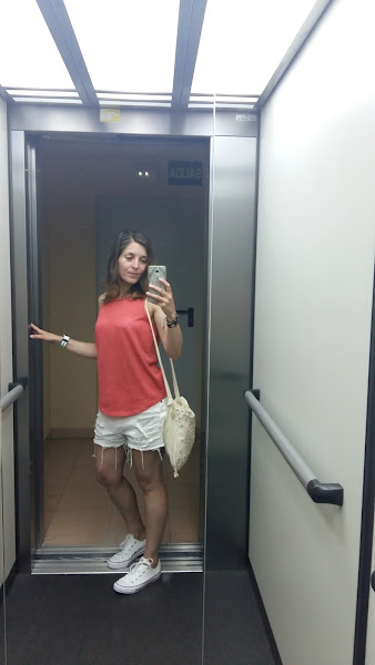 Camiseta de Bershka de hace dos temporadas y los shorts de Primark que me compré en junio.