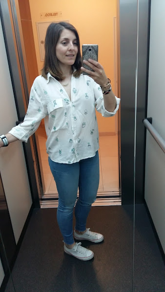 Vaqueros rotos, zapatillas tipo converse Primark (3€ el verano pasado) y camisa de Lefties con estampado de cactus por 12€.